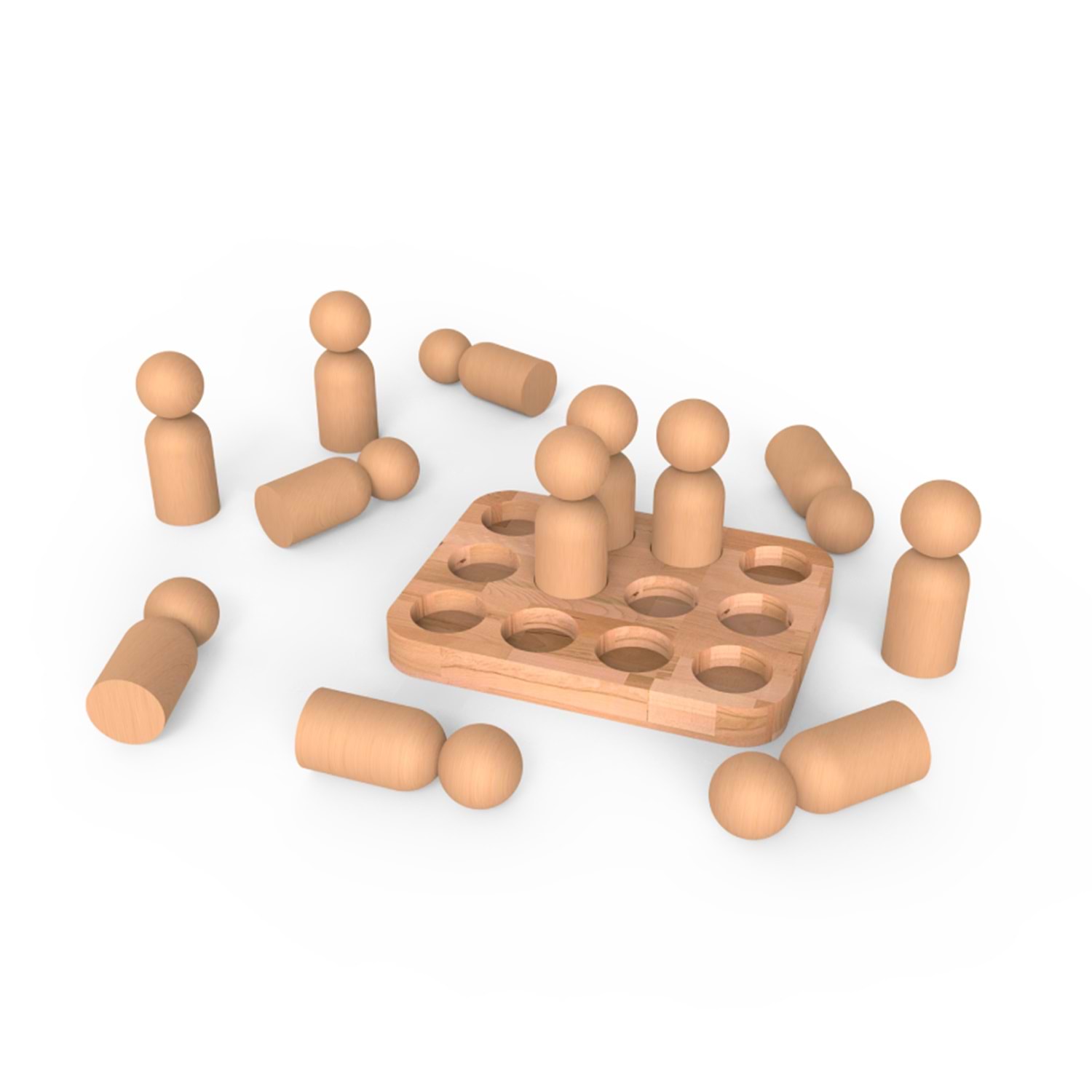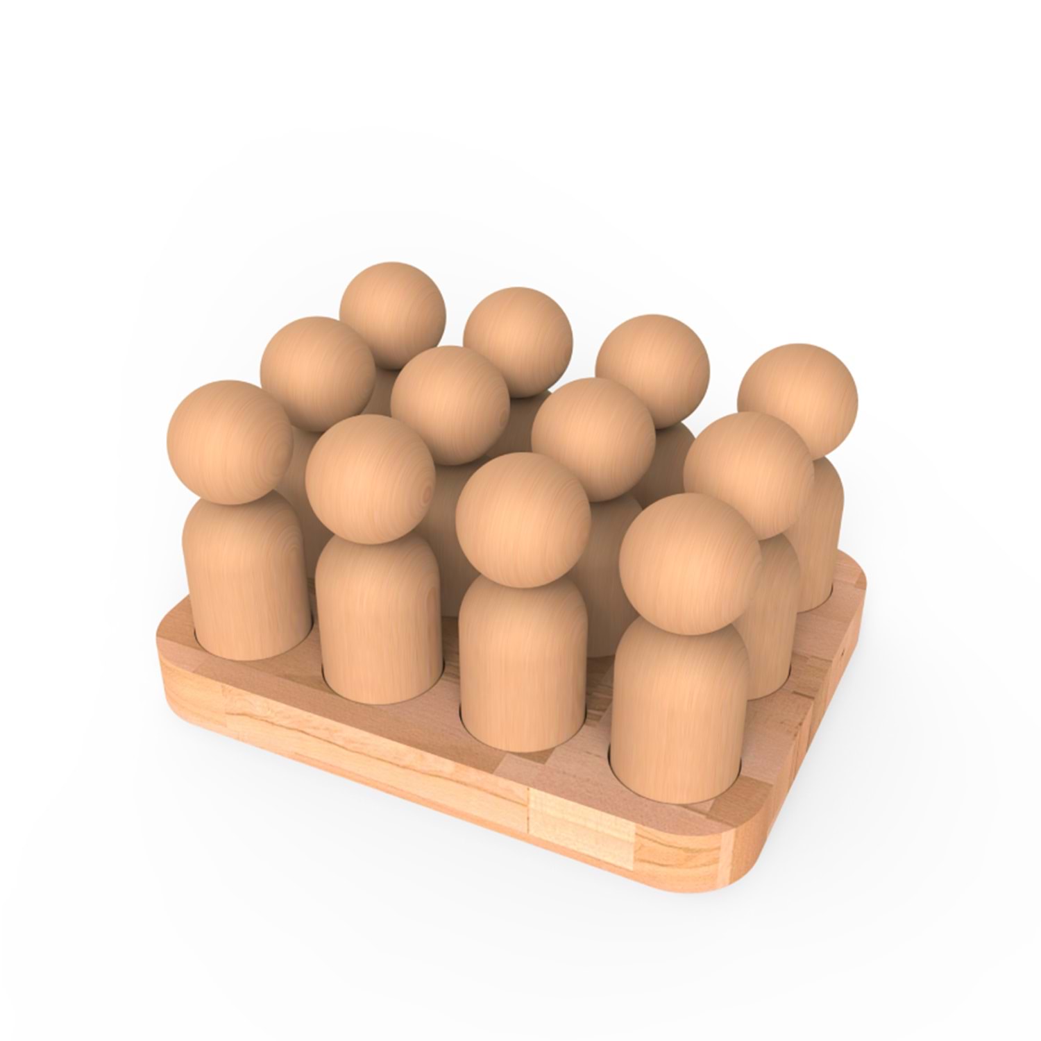 Ahşap Peg Bebekler (12+1 Dikdörtgen)